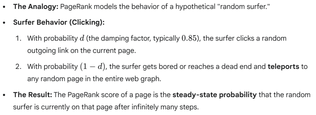 - The “Rich Get Richer” Effect:Link analysis creates a feedback loop. Top-ranked pages get more traffic, which leads to more people citing/linking to them, which further cements their top ranking.