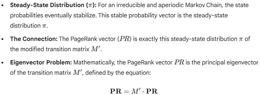 - Formal Model:The random surfer model is mathematically equivalent to a Markov Chain.